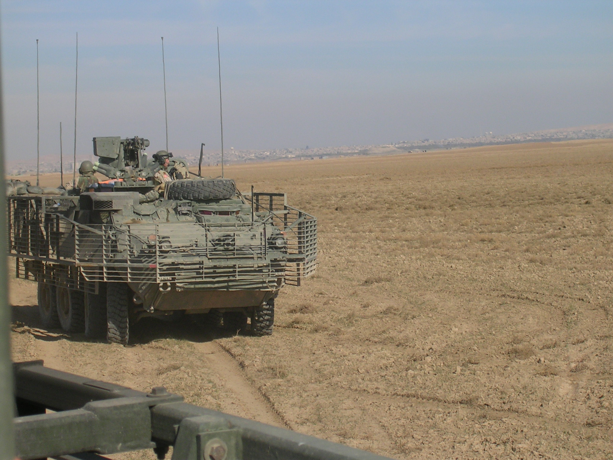 Comms are a given for tactical vehicles, and this is increasingly extended to all crewmembers via speakers and combat vehicle crewman helmets, which look like Mickey Mouse ears, especially on Michael Dukakis. The same kids who grew up figuring out how to set the clocks on their parents’ VCRs and beat the latest Gameboy offering don’t meet an overwhelming challenge in adapting their HMMWVs and Strykers to pump up the volume. Everybody’s got iPods, MP3s and CD Walkmans; a 20-dollar hajji boom box and a couple of RCA mini-jack cables are about all it takes to spread the gospel of funk. A 20-odd ton Stryker armored vehicle, cruising the streets of an Iraqi city with its tall tires and birdcage slat armor, may not look much like a tuner Supra from East L.A., but the music floating up through the air guard hatches can take you right back to the ‘hood, the barrio or the Westchester Mall.