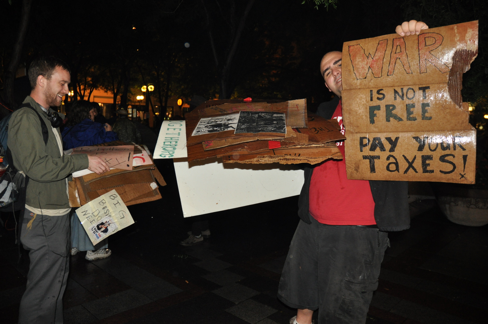 Occupy Seattle participants don’t admit of a chieftain, but they’ve nominated committee heads for Housing, for Arts & Public Speaking, Technology, Maintenance, Food and Tactics. Every day at 1600 hours, they hold a Battle Update Briefing — no, strike that — a “general assembly” run on purely democratic principles.