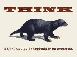Still, it’s best to remember that Honey Badger doesn’t give a shit, and you know why? ‘Cause Honey Badger is immune to political writing, cares nothing for idealism — and besides, Honey Badger LOVES metaphor.