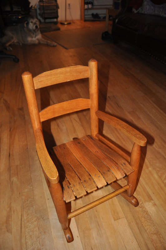 Once upon a time, it belonged to a boy. His dad was Chuck and his mom was Susan. Chuck is a Vietnam vet and Susan has been his sweetheart since seventh grade. In their garage sleeps an R60 BMW. Chuck inherited it from his pop, and takes it out for a ride every New Year’s Day. He’ll never give up that bike, but after his boy didn’t fit into it anymore, Chuck passed the tiny rocker along to Pretty Wife — back in her Pretty Single Mom days — for her boy to sit in and rock.